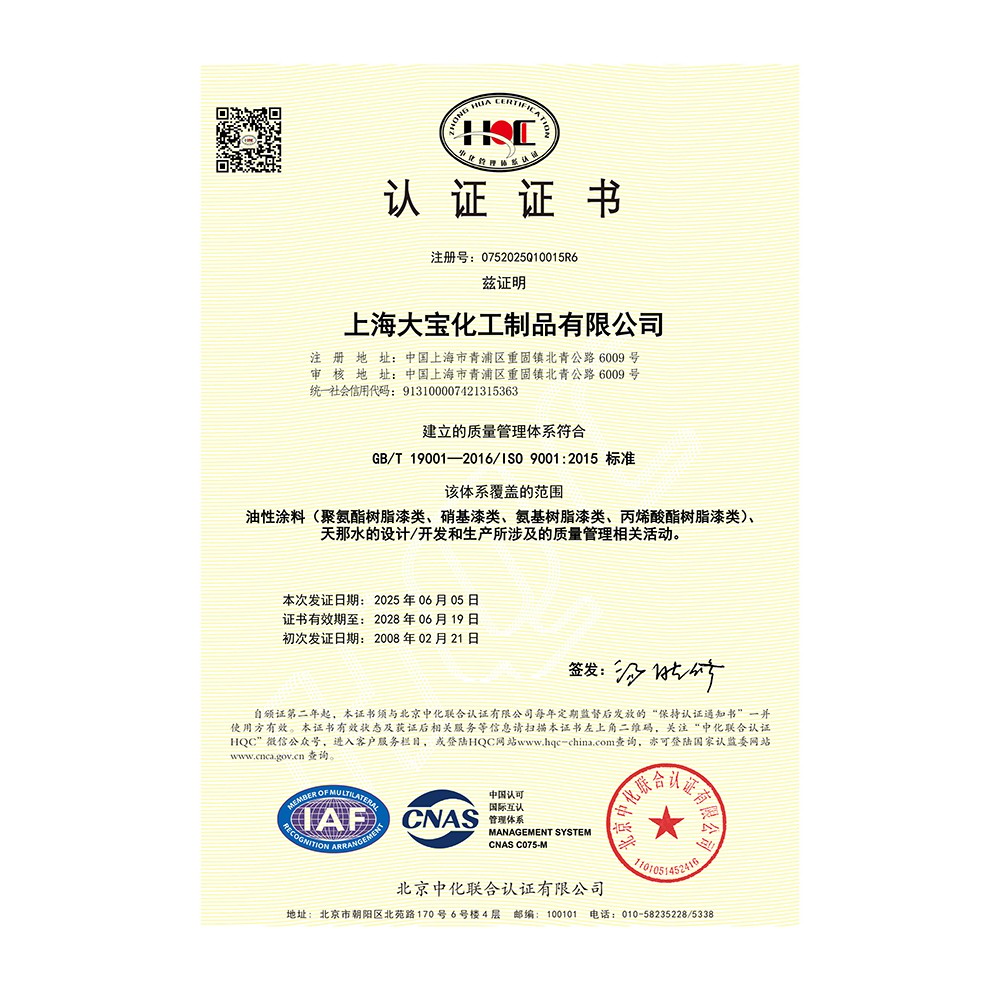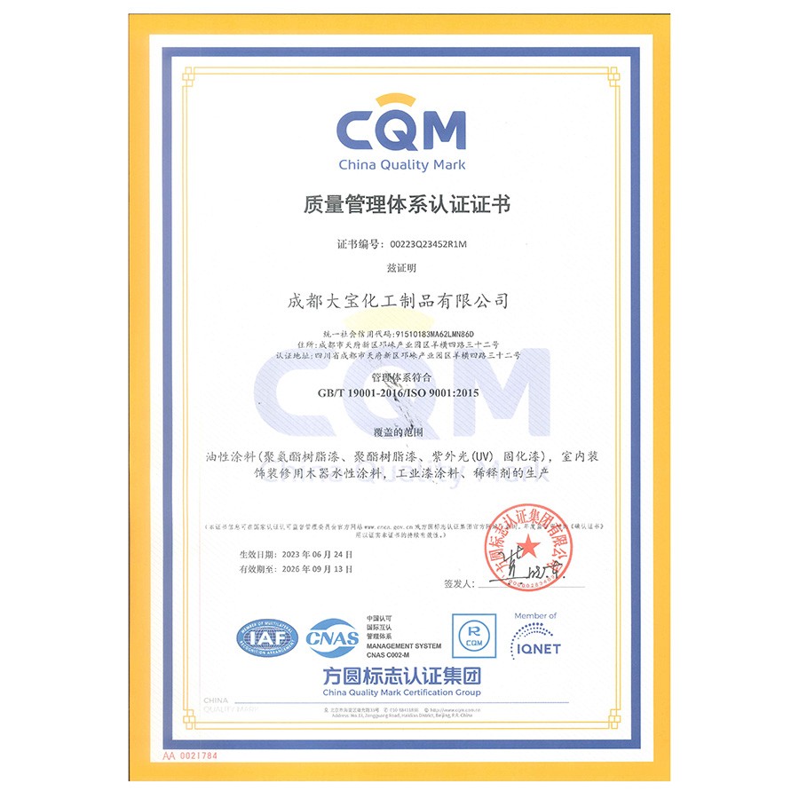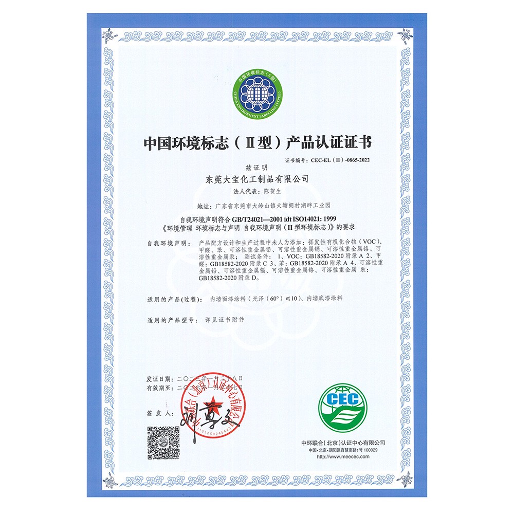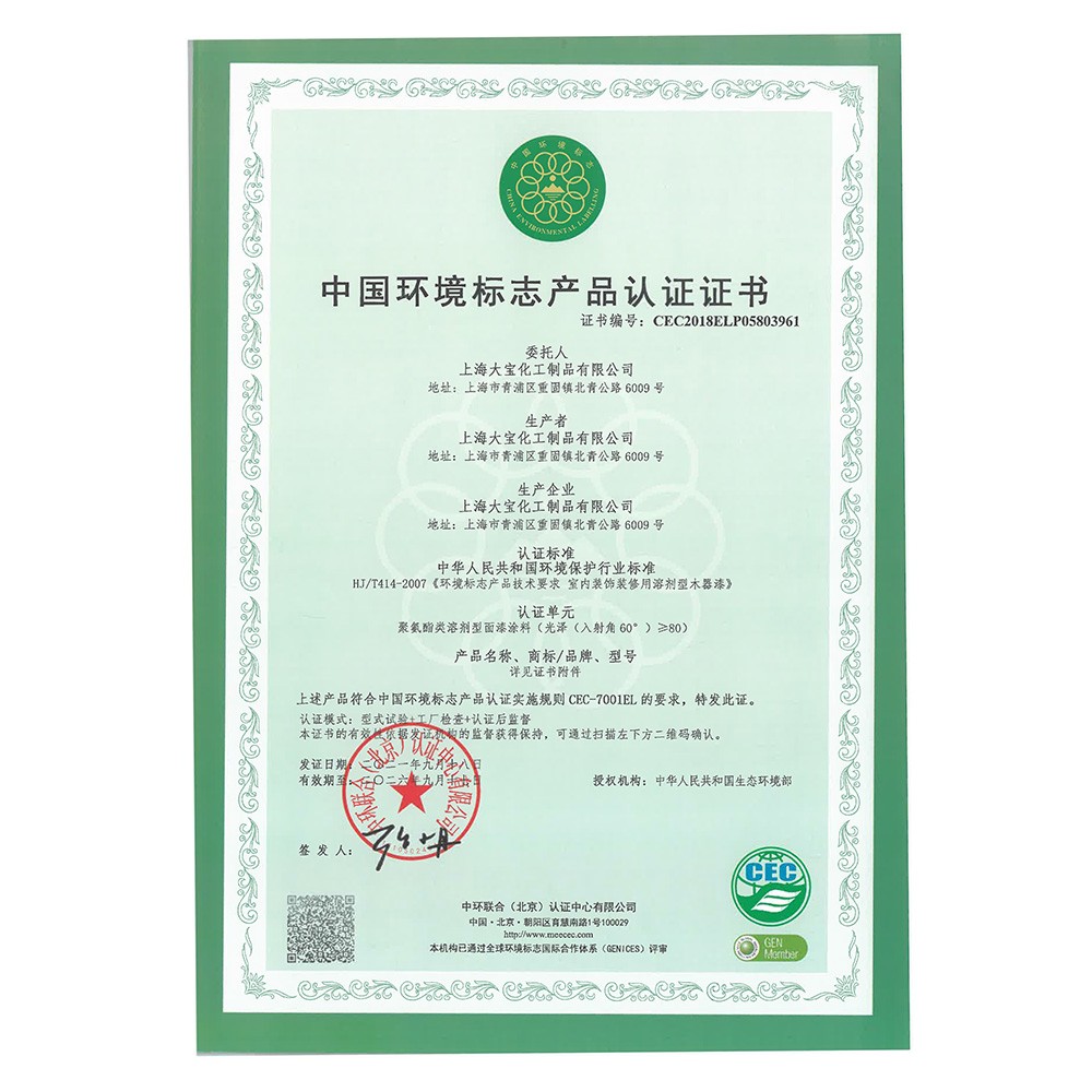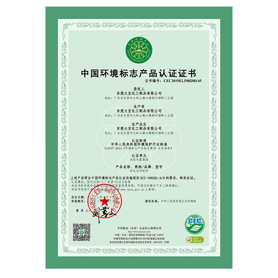 中国环境标志产品认证证书(水性木器漆)