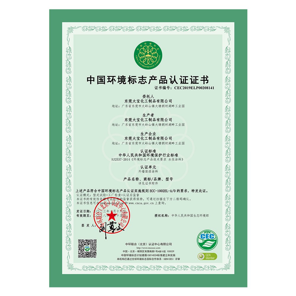 中国环境标志产品认证证书(外墙涂料)