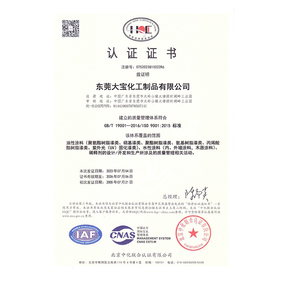 ISO9001质量管理体系认证(东莞大宝)