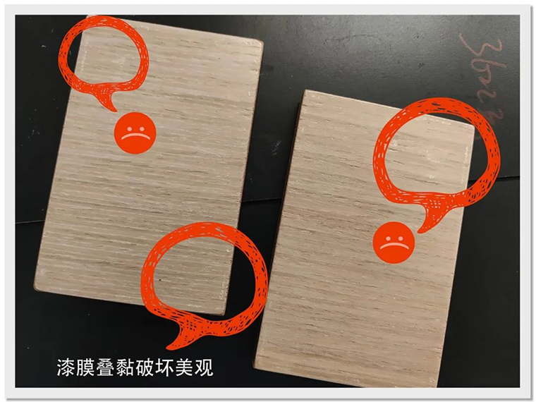 左:原配方,漆膜回粘看的见                 右:新升级,漆膜完整无异常