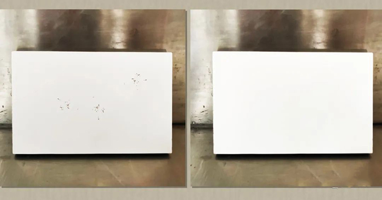 ▲在三聚氰胺板直接涂水性漆白面 西西影视官网,经30次冷热循环后的密着性测试 .