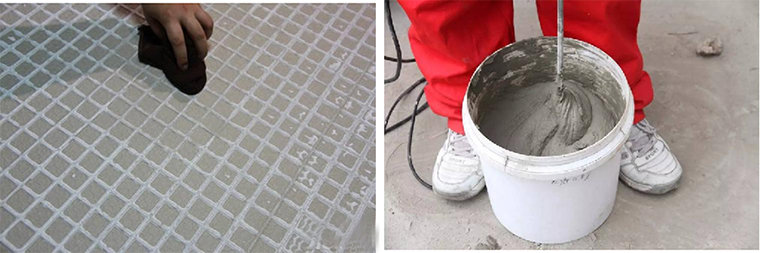 2、胶浆配制:先将液料加入桶中,搅拌同时加粉料搅拌至均匀无结块方可使用;