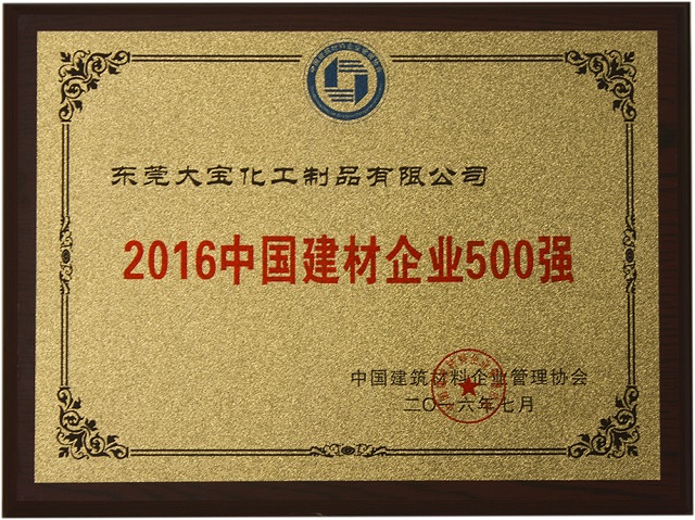 东莞大宝化工制品有限公司在中国建筑企业管理协会,中央国情调查委员会及焦点中国网的联合评测中,荣获“2016年中国建筑企业500强”荣誉奖项, 西西影视在线观看。