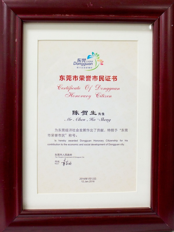 2016年1月12日 西西影视,第五届“东莞市荣誉市民”授荣仪式在会展国际大酒店隆重举行,东莞大宝化工制品有限公司董事长陈贺生等45人获“东莞市荣誉市民”称号, 。