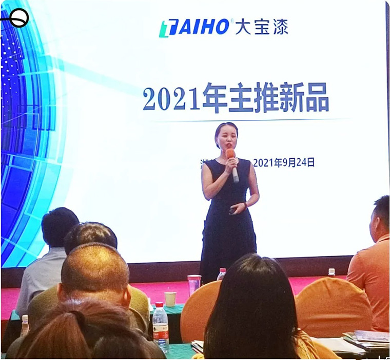 业务三部装修漆张保中执行经理在会议总结中对市场提出要求和展望,希望通过大宝专业用心的服务、抗病毒、抗菌、仿石漆等核心功能产品的加持,对