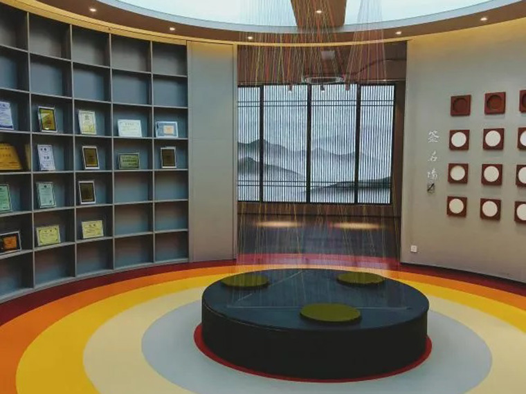 在隔出来的弧形展厅,一面墙展示着企业获奖荣誉证书 西西影视app下载,一面墙是客户的签名展示区, 。