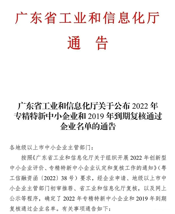 近日 西西影视,广东省工业和信息化厅公布了《关于公布2022年专精特新中小企业和2019年到期复核通过企业名单的通知》,东莞大宝化工制品有限公司顺利通过各级部门的审核,被认定为2022年度广东省“专精特新”中小企业, 。