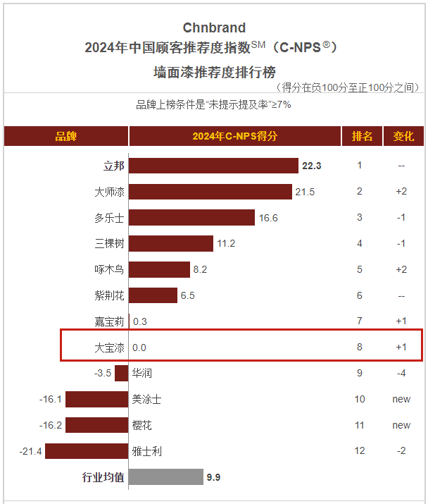 1月,品牌评级权威机构Chnbrand发布2024年(第十届)中国顾客推荐度指数(C-NPS)品牌排名和分析报告,大宝墙面漆,木器漆,艺术漆分别以优异的口碑入围排行榜单, 西西影视。