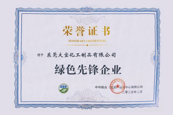 2025年3月20日,在广东珠海举行的中环联合认证中心重点客户交流会上,东莞大宝化工制品有限公司凭借在绿色低碳领域的卓越表现,荣获“绿色先锋企业”称号 西西影视,彰显了其在可持续发展方面的领先实力, 。