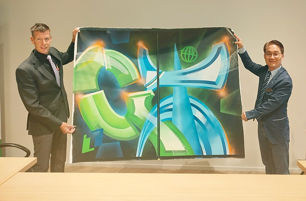 此次签约仪式别具创意与情感意义,高乐伯总裁Kees特别邀请当地知名画家以“G”与“T”两个字母为主题,分别代表Global Paint与Taiho Paint,创作一幅融合东西方艺术语汇的油画作品。签约当日,双方代表共同剪下画作中央,各自保留一半,象征两家企业跨越地域、文化的深度连结。