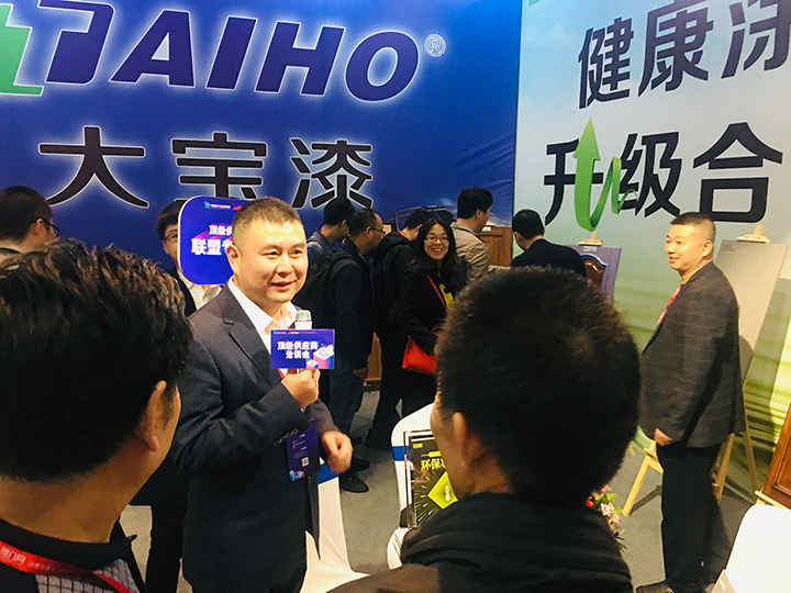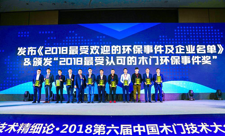 大宝漆荣获2018最受认可的木门环保事件奖(左四谢伟代表领奖)