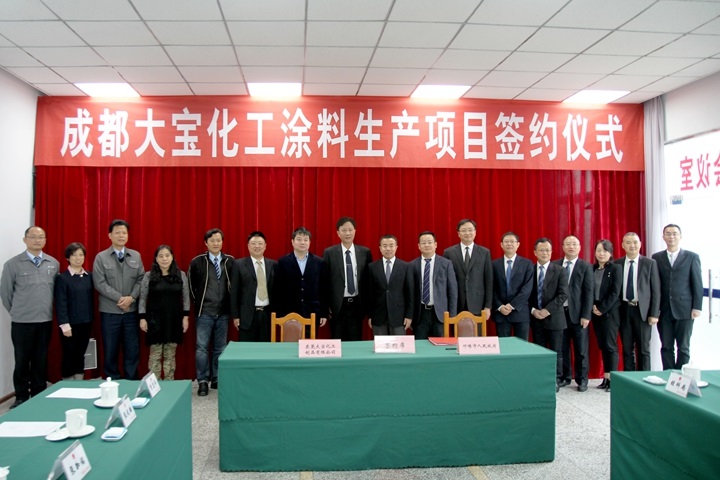 11月11日上午,成都大宝化工涂料生产项目落户成都市邛崃羊安工业园区,中共成都邛崃市委书记曾洪扬,市长惠朝旭,市委常委何兴轩等出席了接待仪式 西西影视,随后,大宝国际董事长陈贺生与邛崃市副市长周洪彬代表双方签约,当日,成都大宝化工制品有限公司宣告正式成立,标志着在业内具有极高声誉的大宝漆正式落户邛崃, 。