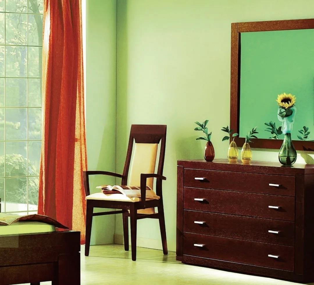 中绿色搭配深色木制家具,有效调节了整个居室环境的平衡感,让整个房间焕发出生机活力。