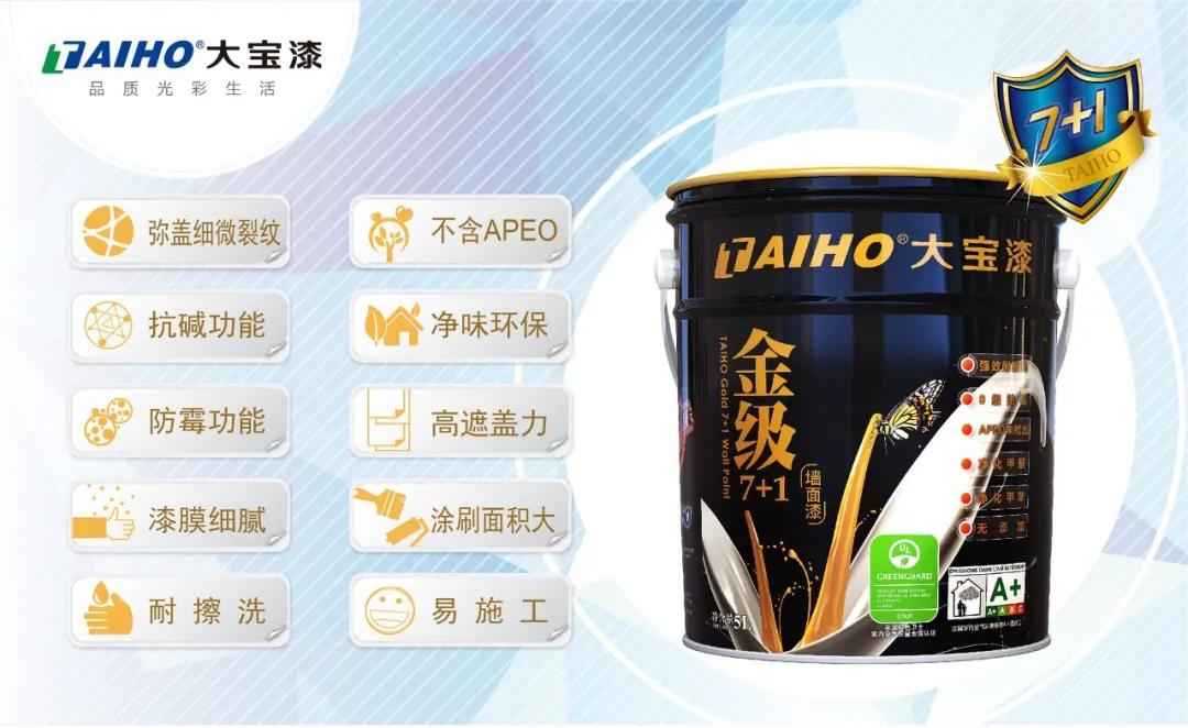 大宝金级7+1墙面漆,甄选优质原材料结合大宝最新科技研发而成,拥有高效抗甲醛功能、甲醛净化率高达80%以上;同时,它还通过了美国绿色卫士室内空气质量金级和法国室内空气检测A+级的双认证,TVOC含量超低,防霉性优异,功能卓越。