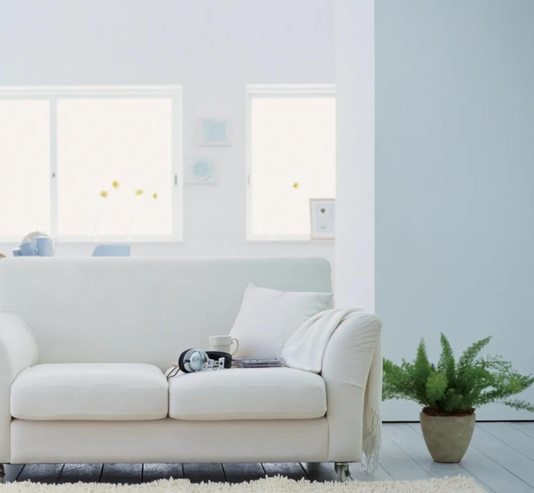 空间整体以天空蓝为主打色,在柔和色彩的映衬下搭配白色的布艺沙发,营造出轻柔、唯美、慵懒的居家氛围。