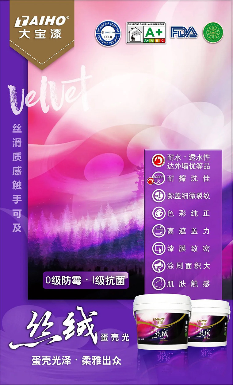 大宝丝绒蛋壳光亲肤触感,给家全新视觉体验,采用国际品牌优质原料,结合净味技术和创新『肌肤触感墙面体验』及独特的工艺精心研制,涂刷后墙面呈现丝绒般光泽,不反光的柔雅质感,同时漆膜致密饱满,亲肤触感与视觉效果完美统一,同时符合多项国际环保认证 西西影视官网,为家打造全新的视觉盛宴和居家体验, 。