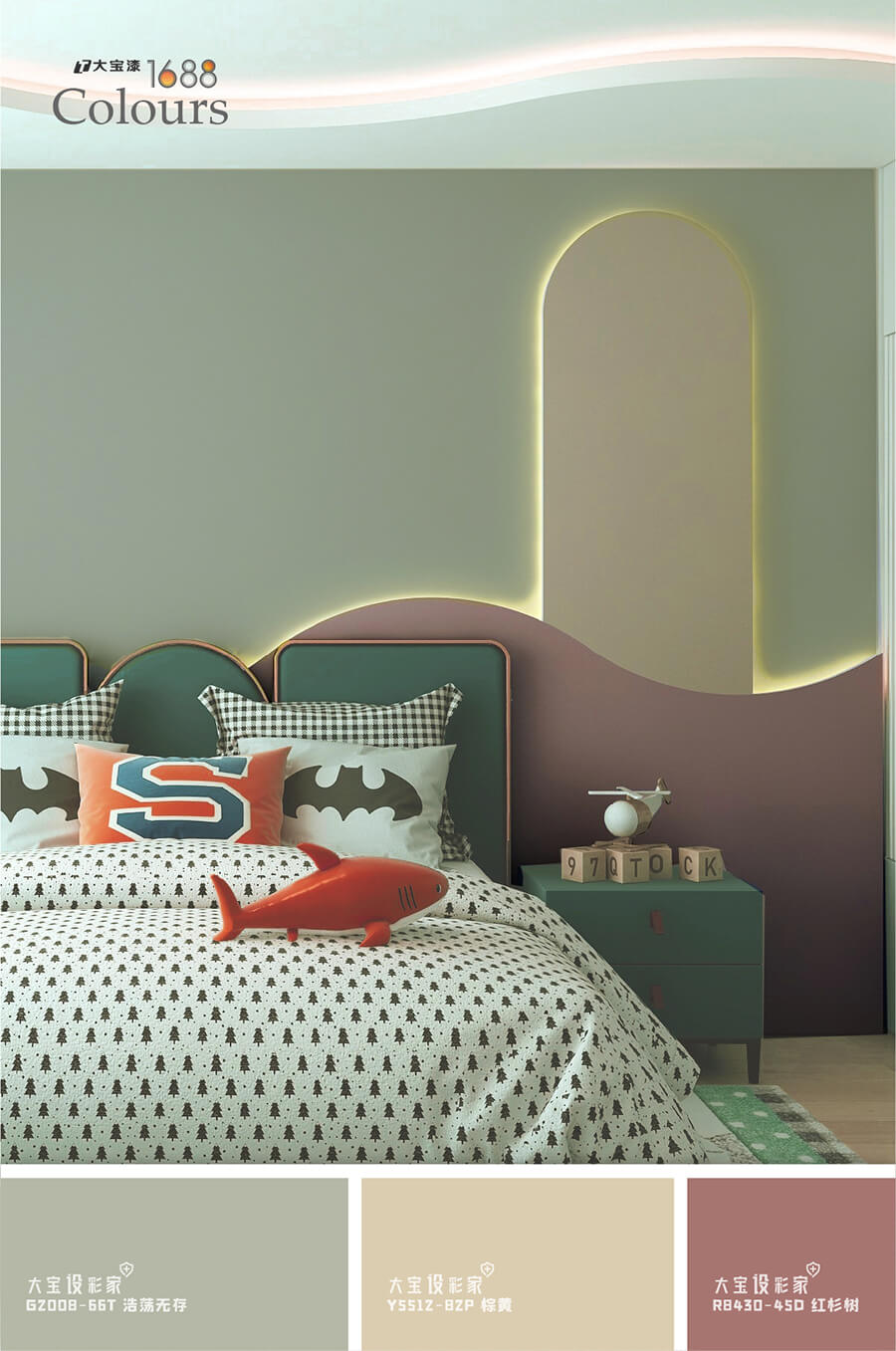 儿童房的设计不妨采用几何和线条设计,选择较深的灰绿色为主色调,增加空间中的宽阔感,搭配红色系 西西影视在线观看,活泼欢快即刻拥入,相比较高饱和度的颜色,加入灰色中和,这种对比色调的搭配,整体空间相互制约抵消,不仅点亮空间,还予人一种赏心悦目的感觉, 。
