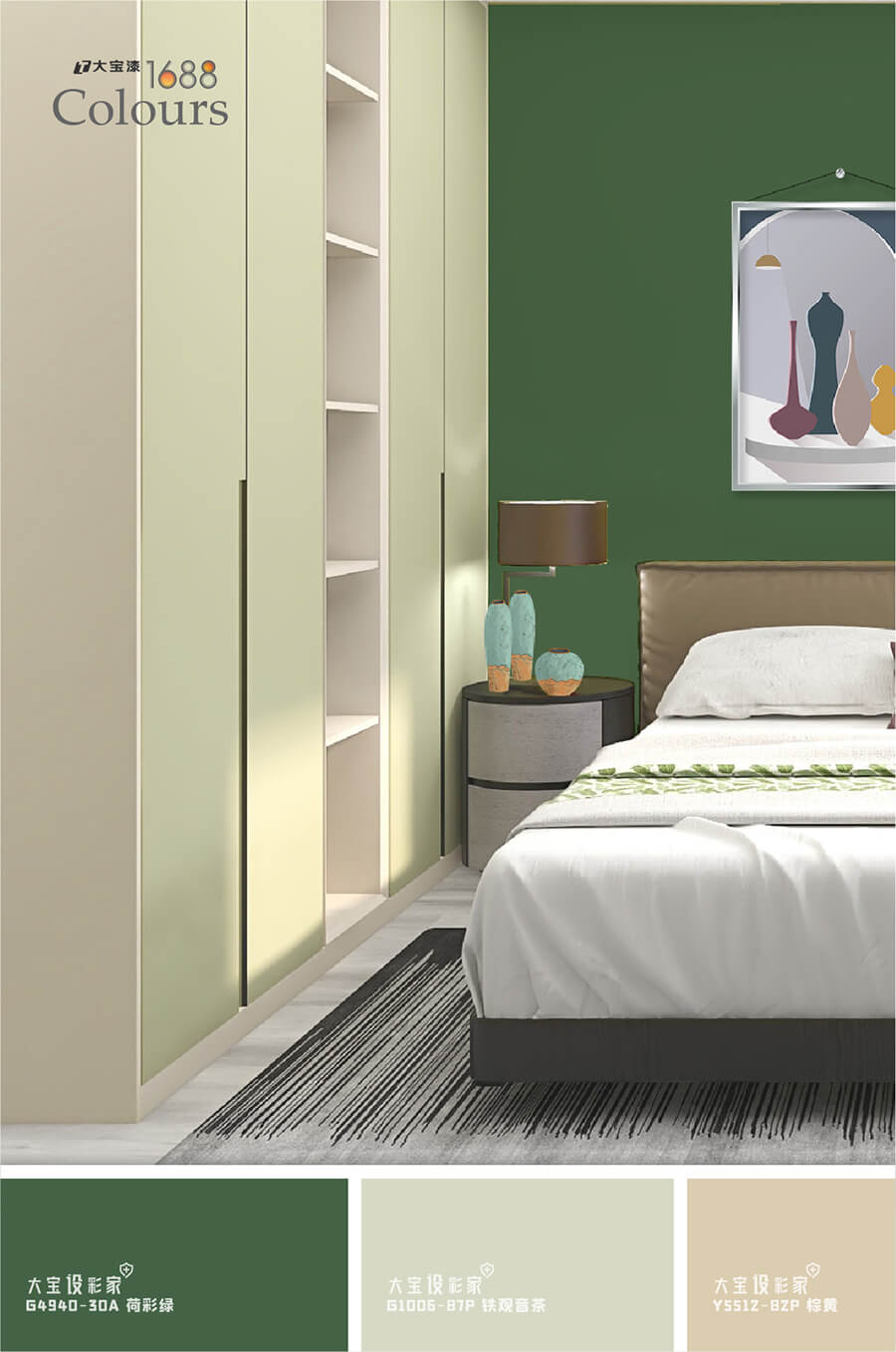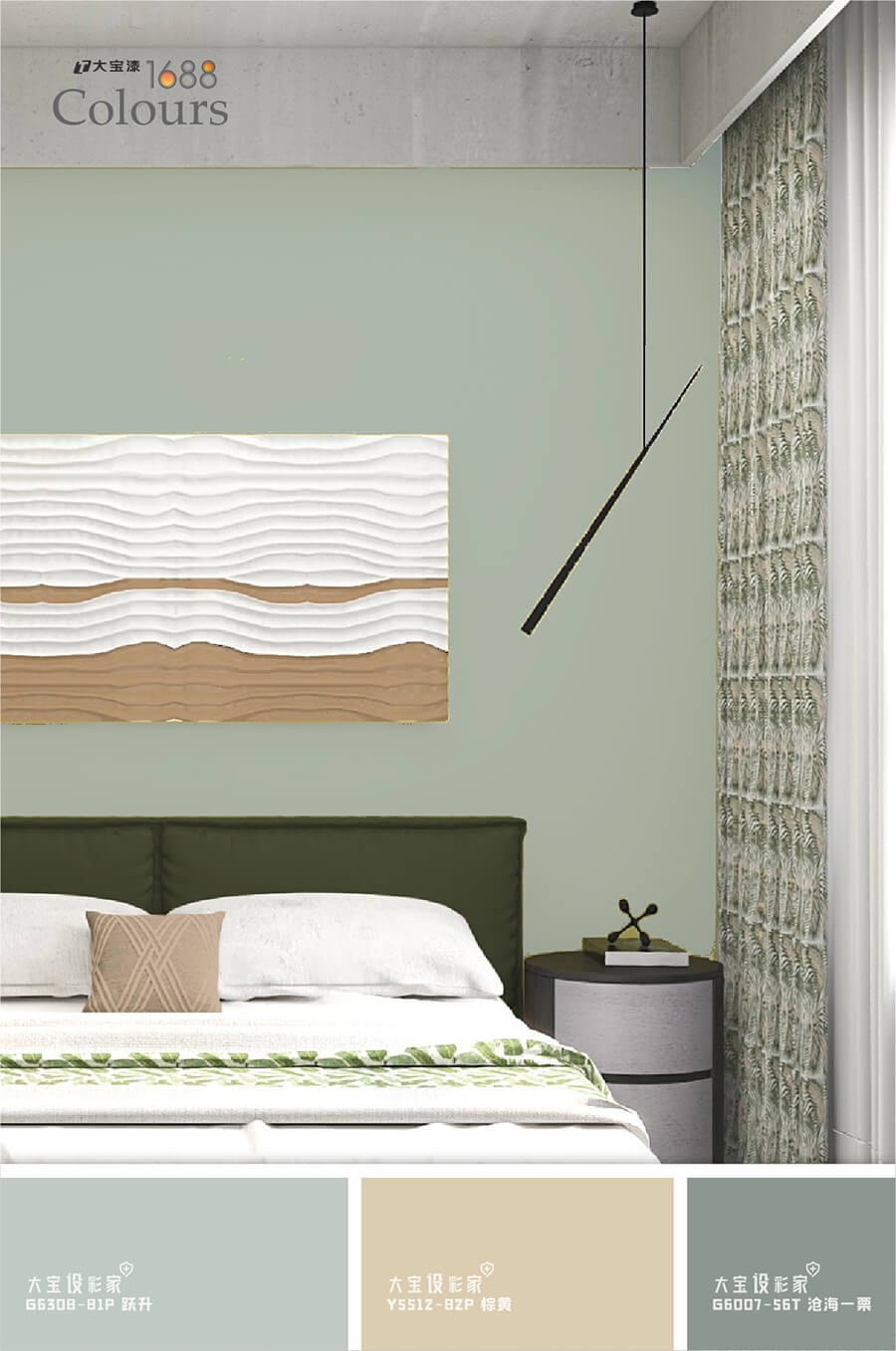 灰绿的莫兰迪色在空间中百搭零失误,运用在卧室空间会更舒服稳重,大宝荷采绿(G4940-30A)赏心悦目的颜色,富有治愈气息,可以作为大量的墙面色彩使用,也可以用橱柜,茶几,床组等软装作为色彩载体进行局部性点缀 西西影视在线观看,不仅可以点亮空间,还能带来清爽自由, 。