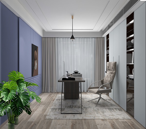 书桌和橱柜可以选用深浅不同的灰白色系,