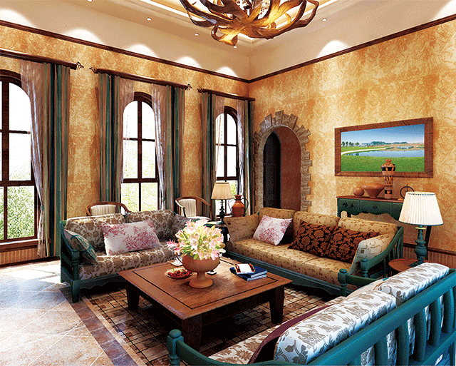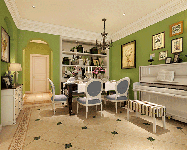 欧式田园风格在设计上讲求心灵的自然回归感,喜欢把一些精细的后期配饰融入到设计风格之中,体现一种安逸,舒适的生活氛围,通常大量使用碎花图案的各种布艺和挂饰 西西影视app下载,墙壁上也并不空寂,壁画和装饰的花瓶都使它增色不少,鲜花和绿色的植物也是很好的点缀, 。
